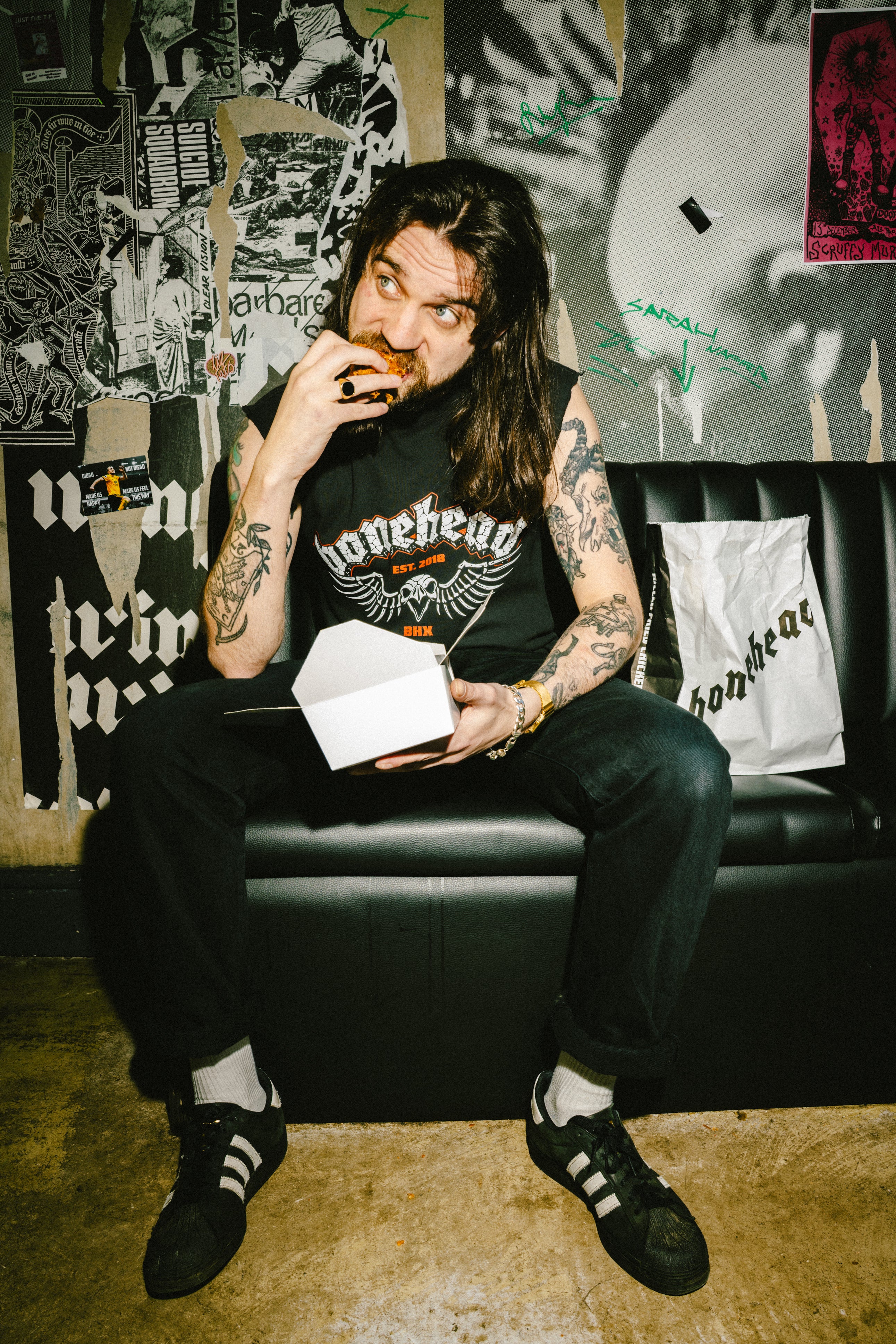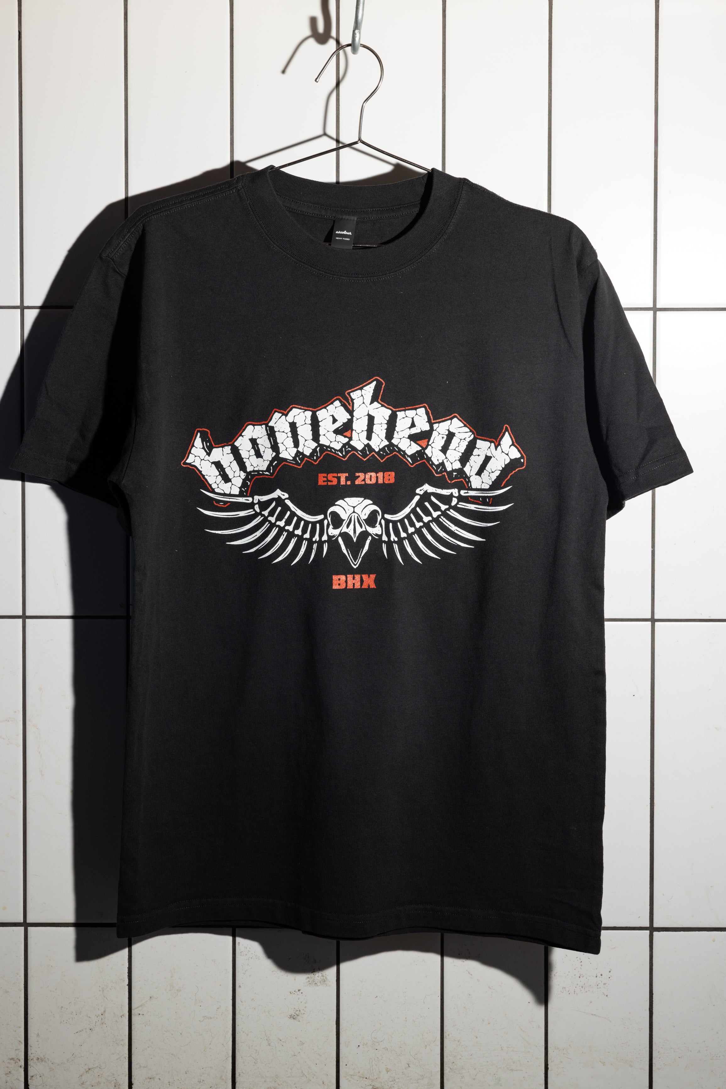 Front print wing logo. Printed on a washed black oversized tee. Go for a size down for a regular fit. Artwork by Dirt Wizard.